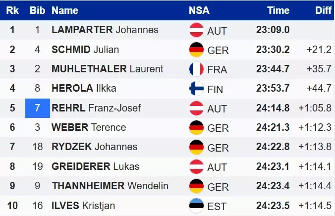 Вторым стал немец Юлиан Шмид, уступивший главному конкуренту в 21.2 секунды. Тройку замкнул спортсмен из Франции Лоран Мюлеталер.
