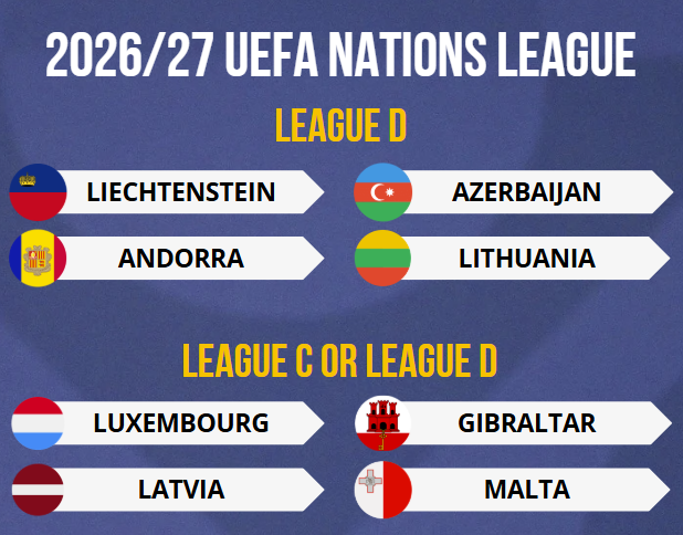 Лига C или D. Гибралтар, Латвия, Люксембург, Мальта