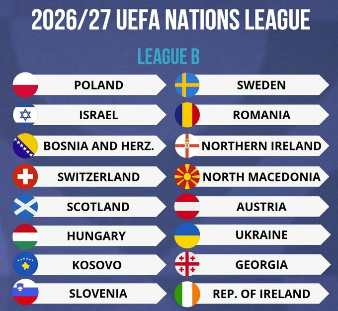 Возможные соперники Украины в Лиге наций B сезона 2026/27.