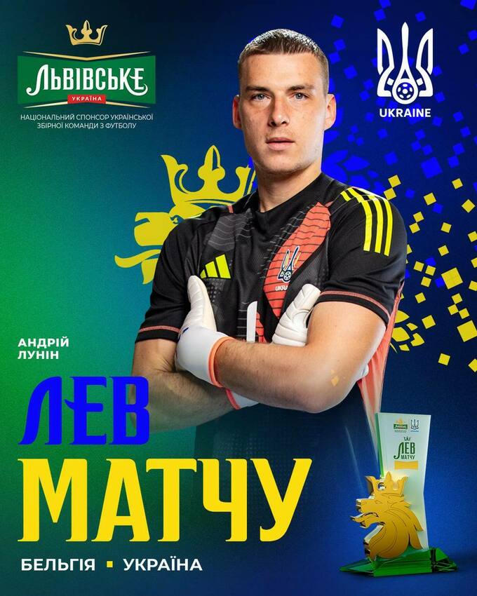 Болельщики сборной Украины выбрали Льва матча после этого поединка. Награда досталась Андрею Лунину, который сегодня пропустил три гола и сделал три сейва. За Лунина проголосовало 58% болельщиков.