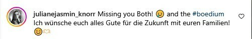 julianejasmin_knorr: Скучаю по вам обоим! Я желаю вам всего лучшего в будущем с вашими семьями!