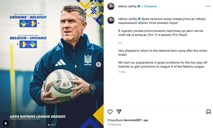 Однако, болельщиков такой поступок разозлил еще больше – они оставили свои отзывы под прошлыми постами, где еще осталось возможность комментировать. Реброва продолжают критиковать за поражение от Бельгии после победы в первом матче (3:1).