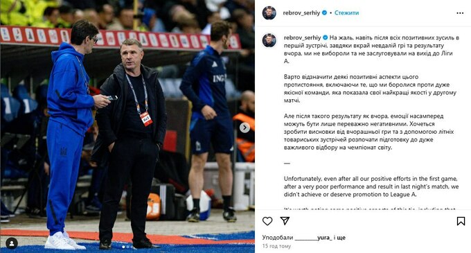 После окончания этого противостояния украинские болельщики и эксперты обрушились с критикой на главного тренера «сине-желтых» Сергея Реброва. Фанатам не понравилась выбранная тактика на матч и три пропущенных гола. Из-за большого потока негатива наставник сборной Украины принял неожиданное решение – закрыл комментарии под тремя последними постами в социальных сетях.