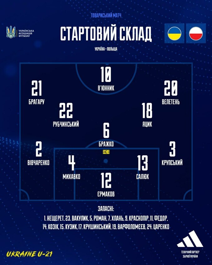 Стал известен стартовый состав сборной Украины U-21 на матч с Польшей