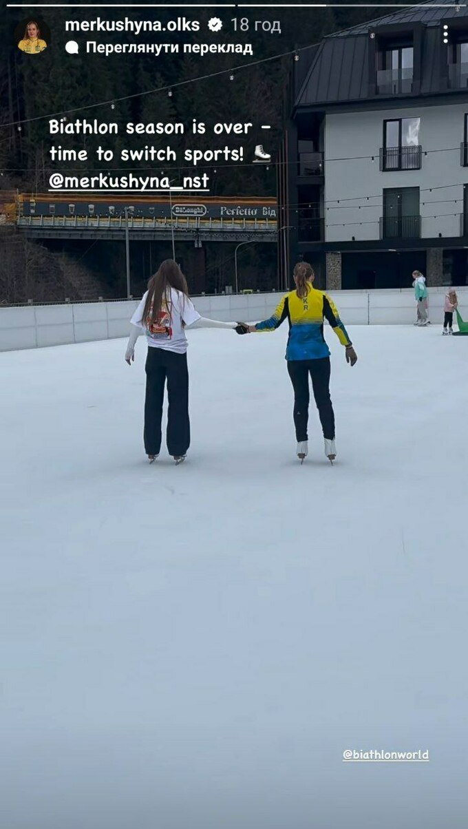 Молодая украинская биатлонистка Александра Меркушина в социальной сети Instagram опубликовала небольшое видео из украинского Буковеля. Перед стартом чемпионата Украины Александра вместе с сестрой Анастасией провели время на ледовой арене.