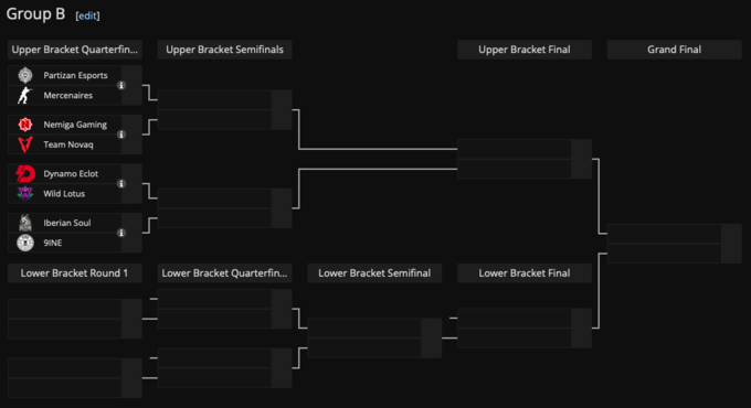 Група B без украинских команд – 9ine, Iberian Soul, Wild Lotus, Dynamo Eclot, Team Nowaq, nemiga, Partizan Esports, Mercenaires.