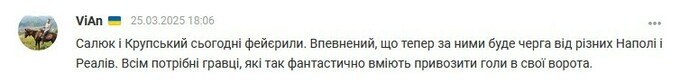 ViAn: Салюк и Крупский сегодня феерили. Уверен, что теперь за ними будет очередь от разных Наполи и Реалов. Всем нужны игроки, так фантастически умеющие привозить голы в свои ворота.