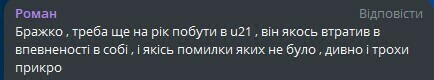 Роман: Бражко, надо еще на год побыть в U-21, он как-то потерял в уверенности в себе, и какие-то ошибки которых не было, странно и немного обидно.