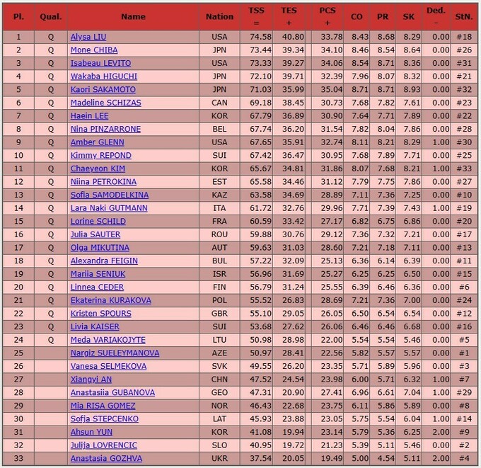 Соревнования начались с короткой программы среди женщин, в которой приняли участие 33 спортсменки. Анастасия Гожва представляла Украину и пыталась пробиться в топ-24, что гарантировало участие в произвольной программе.