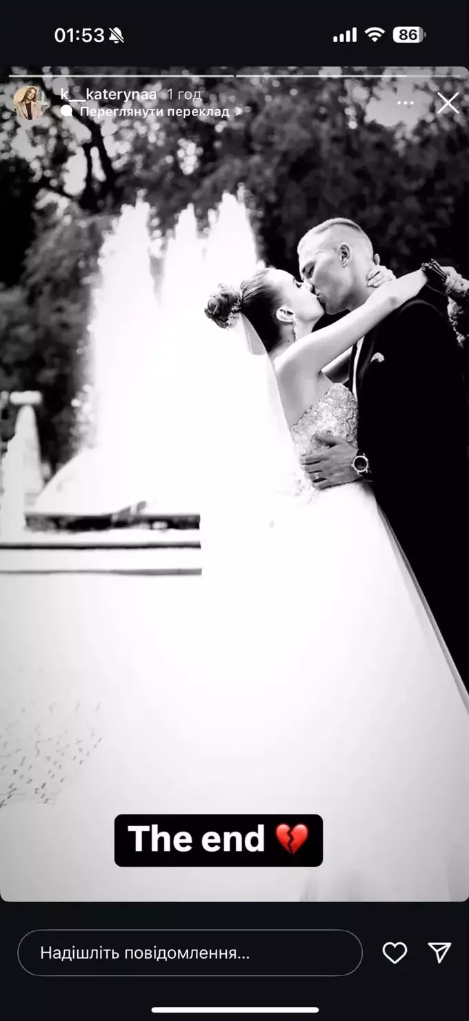Катерина потрясла новостью в Instagram, опубликовав сторис с разбитым сердцем на фоне свадебного фото.