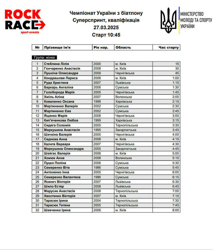 Чемпионат Украины-2025. Женский суперспринт (отбор). Смотреть онлайн LIVE