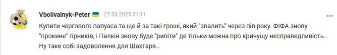 Vbolivalnyk-Peter: Купить очередного папуаса да еще и за такие деньги, который «свалит» через полгода. ФИФА снова «прокинет» горняков, и Палкин снова будет «скрипеть» где только можно о вопиющей несправедливости... Ну такое удовольствие для Шахтера...