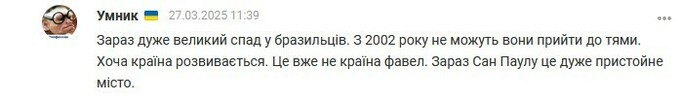 Умник: Сейчас очень большой спад у бразильцев. С 2002 года не могут они прийти в себя. Хотя страна развивается. Это уже не страна фавел. Сейчас Сан Паулу – это очень приличный город.