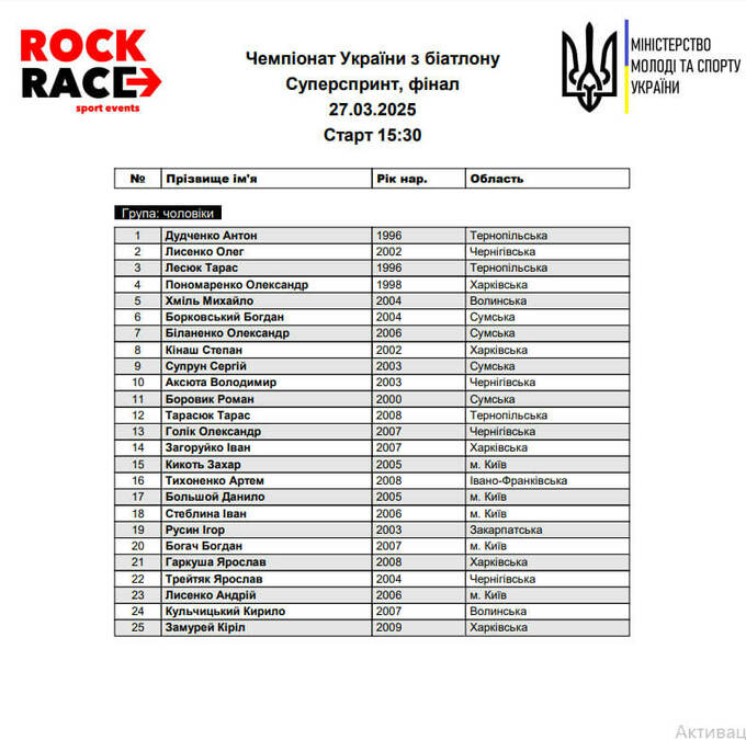 Чемпионат Украины-2025. Мужской суперспринт. Смотреть онлайн LIVE