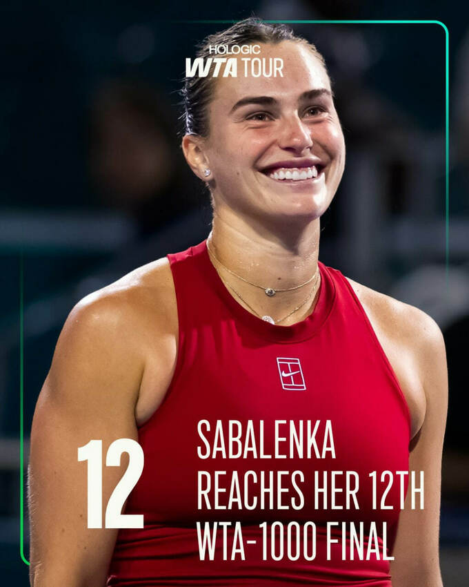 Первая ракетка мира Арина Соболенко справилась с Жасмин Паолини. Соболенко проведет 12-й решающий матч на тысячниках.
