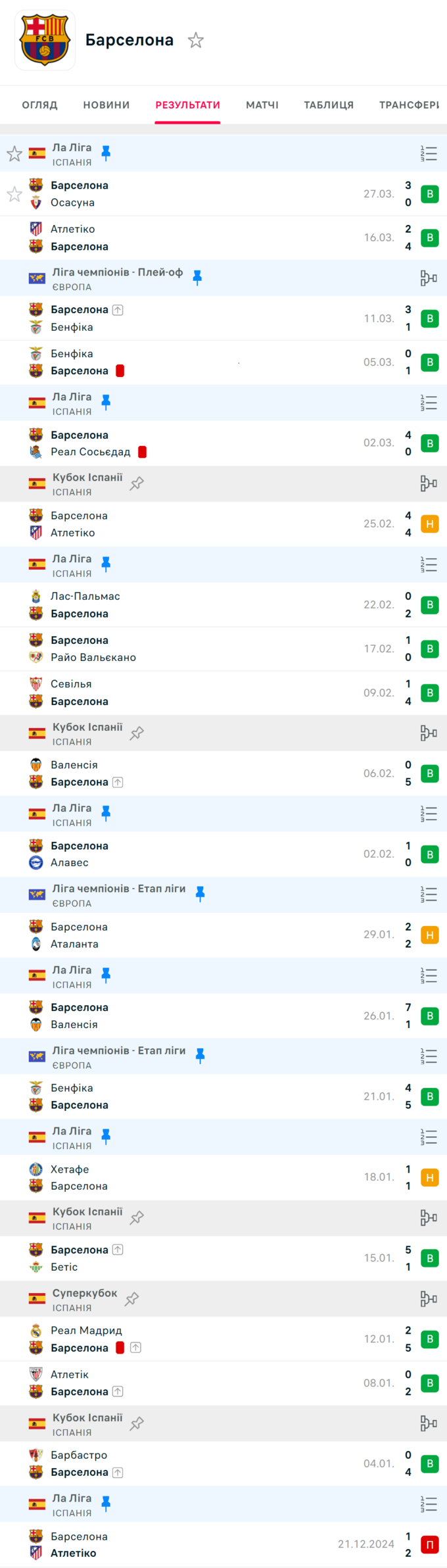 «Каталонцы» в этом сезоне имеют в целом 136 голов. Последнее поражение подопечные Ханси Флика потерпели 21 декабря 2024 года в поединке Ла Лиги против мадридского «Атлетико» (1:2).