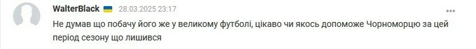 WalterBlack: Не думал, что увижу его же в большом футболе, интересно поможет ли Черноморцу за этот период сезона оставшегося.