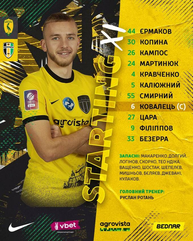 Виталий Первак и Руслан Ротань определились со стартовыми составами своих команд. Интересно, что в состав «аист» с первых минут выйдет Евгений Банада, который большую часть своей карьеры провел за «горожан». А Ротань не сможет рассчитывать на Артема Шабанова.