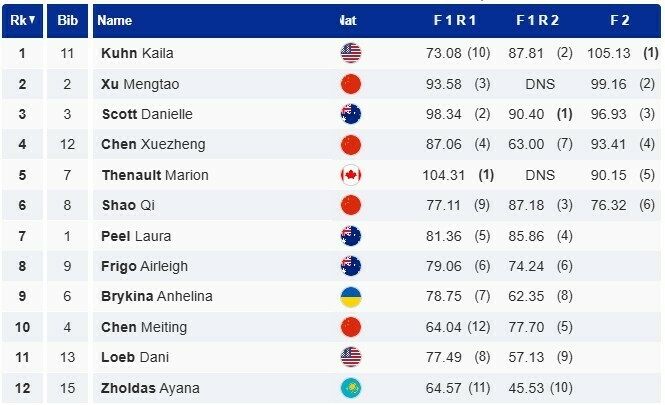 Чемпионкой мира стала Кайла Кун из США (105.13), второе место заняла Сю Ментао из Китая (99.16), а третье – Даниэлла Скотт из Австралии (96.93).