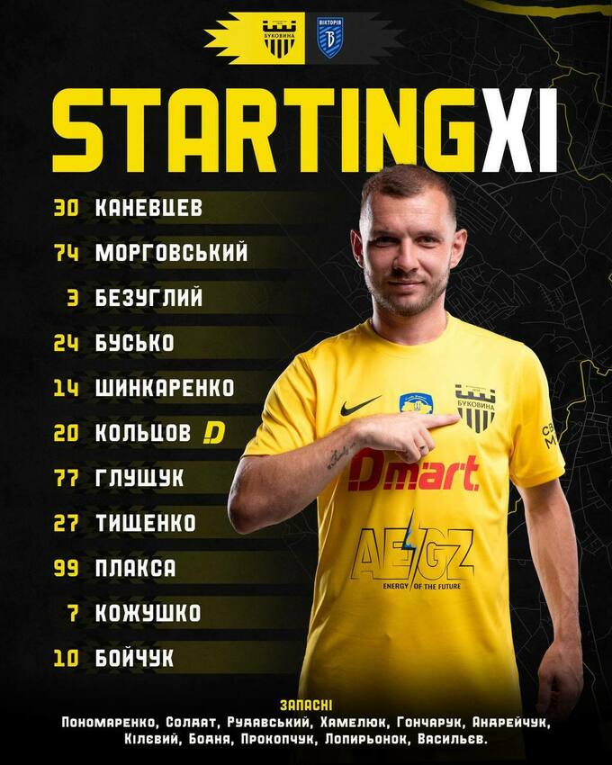 «Буковина» (стартовый состав): Каневцев, Безуглый, Кожушко, Бойчук, Шинкаренко, Кольцов (к), Бусько, Тищенко, Морговский, Глущук, Плакса.