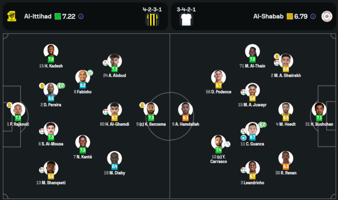 Украинский голкипер «Аль-Шабаба» Георгий Бущан провел на проел весь матч, пропустил 3 гола и совершил 5 сейвов. Статистический портал SofaScore оценил его игру в 7.1 балла из 10. Лучший игроком матча был признан полузащитник гостей Кристиан Гуанка, на счету которого 2 забитых мяча и оценка 8.7.