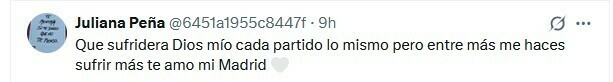 Juliana Peña: Боже мой, каждая игра одинакова, но чем больше ты заставляешь меня страдать, тем больше я люблю тебя, мой Мадрид.