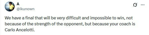 A: Нас ждет финал, в котором будет очень трудно и невозможно победить, не из-за силы соперника, а потому что ваш тренер – Карло Анчелотти.