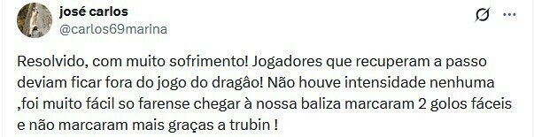 josé carlos: Решено с большими страданиями! Интенсивности вообще не было, «Фаренсе» очень легко добрались до наших ворот, они забили 2 легких гола и больше не забили благодаря Трубину!