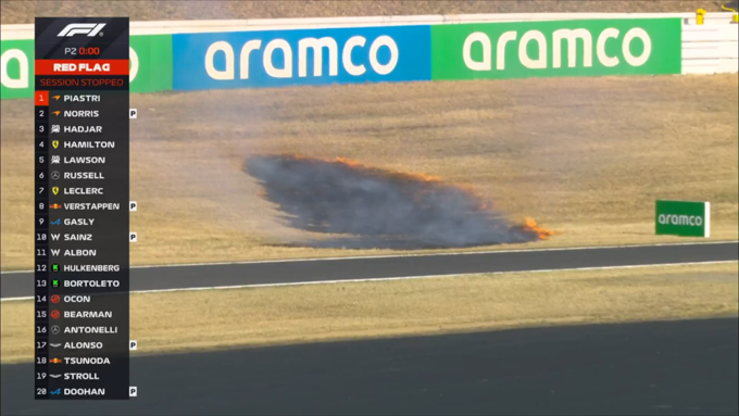 Во второй тренировке лучшим стал пилот Макларена Оскар Пиастри, а топ-3 замкнули Ландо Норрис и Исак Хаджар, хотя из-за четырех красных флагов команды не сумели нормально поработать над настройками машин.