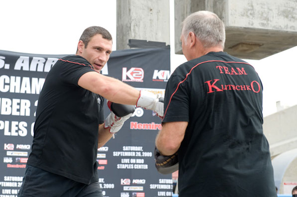 Фоторепортаж об открытой тренировке Кличко и Арреолы