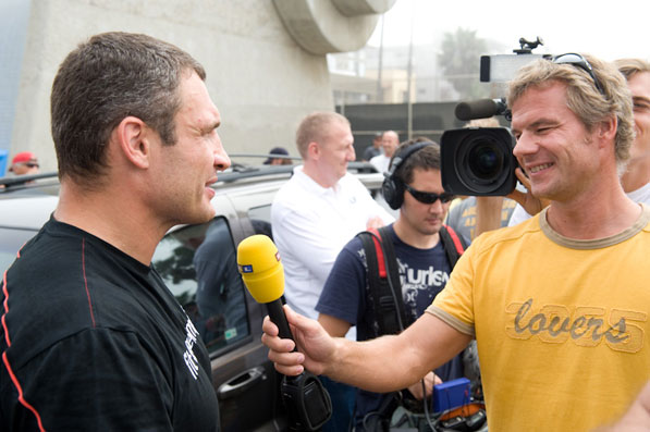 Последующие минут 40 тренировки прошли под комментарии младшего Кличко. Старший брат тем временем с тренером Фрицем Здунеком продемонстрировали упражнение на реакцию с теннисным мячом. В конце тренировки они еще вернутся к этому упражнению на радость публики…