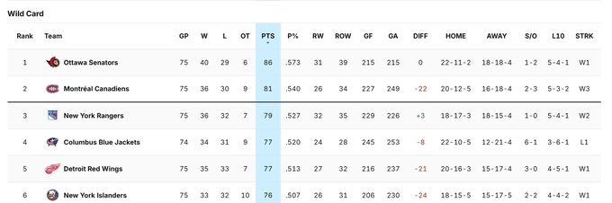 На Востоке Детройт обыграл Каролину 5:3 и еще рассчитывает на второе wild-card место конференции. Крылья набрали 77 очков и на четыре пункта отстают от Монреаля. У обеих команд еще семь матчей до конца.