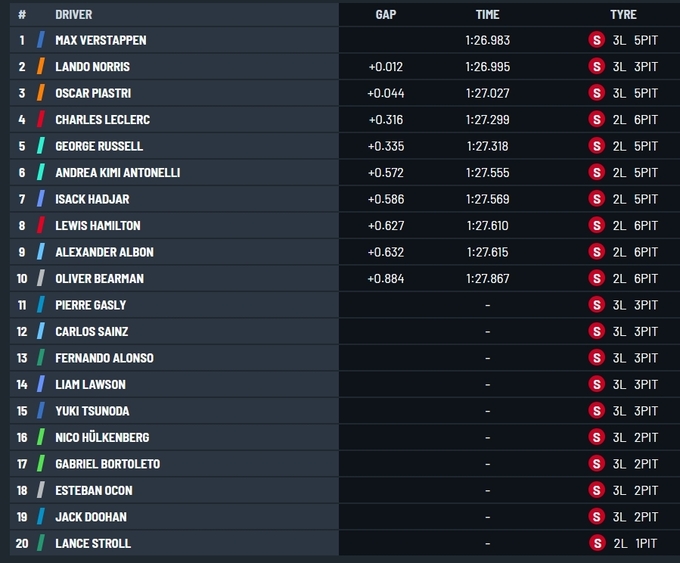 Ожидалось, что вся борьба развернется между Макларенами и гонщиком Мерседеса Джорджем Расселлом, которые имели значительный перевес над соперниками, но Ферстаппен в последней попытке опередил Норриса и Пиастри.