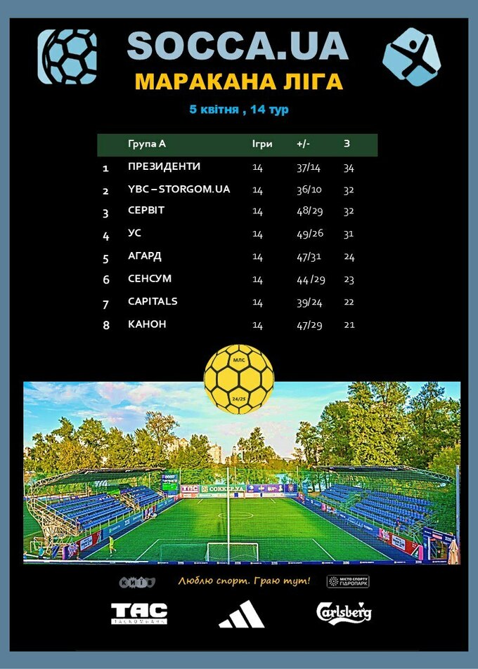 Положение лидеров: 1. Президенты – 34 очка, 2-3. YBC-Storgom.ua, 2-3 Сервит – по 32 балла, 4. Усс – 31.