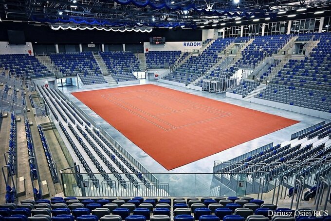 На официальном сайте Radomskie Centrum Sportu появились фотографии корта, на котором в рамках отборочного этапа Кубка Билли Джин Кинг предстоит играть женской сборной Украины.