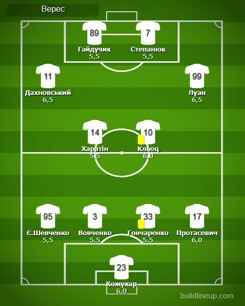 Заміни «Вереса»: Кучеров – 5,5; Годя – 5,5; Видрич – б/о.
