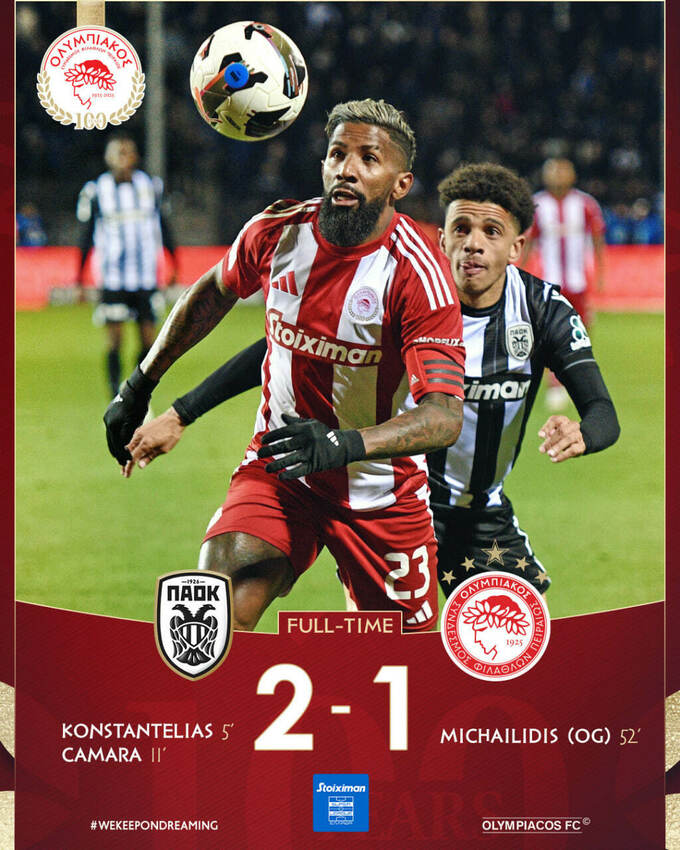 Голами за ПАОК отличились Янник Константелиас и Мади Камара. Для Олимпиакоса единственный мяч оформил защитник хозяев Яннис Михайлидис, который забил в свои ворота после навеса Яремчука.