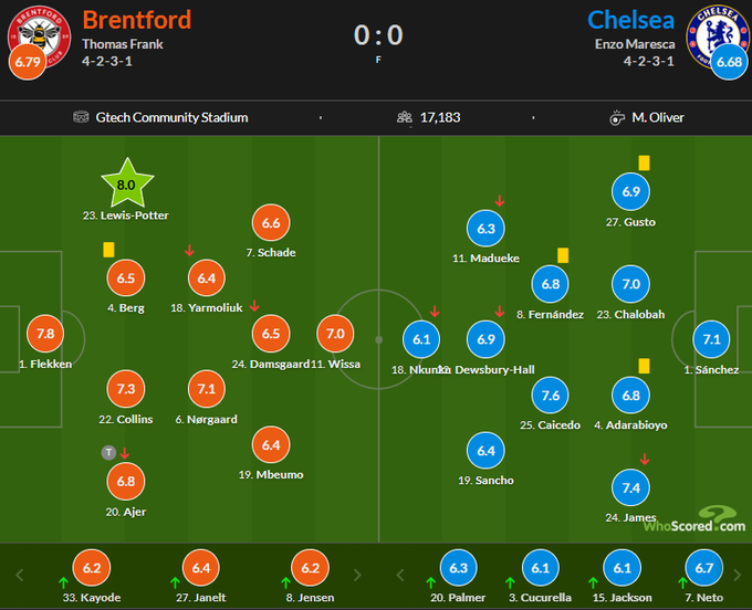 Лучшим игроком матча стал левый защитник Брентфорда Кин Льюис-Поттер (8.0).