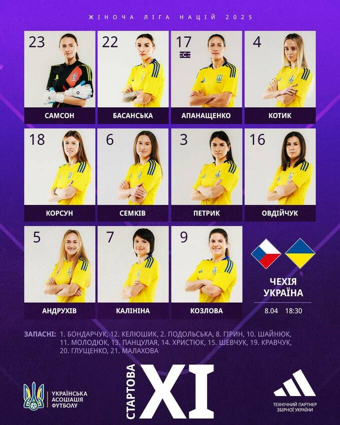 8 апреля женская сборная Украины сыграет второй матч против Чехии в Лиге наций.