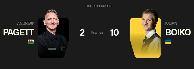 Эндрю Паджетт (Уэльс) – Юлиан Бойко (Украина) – 2:10