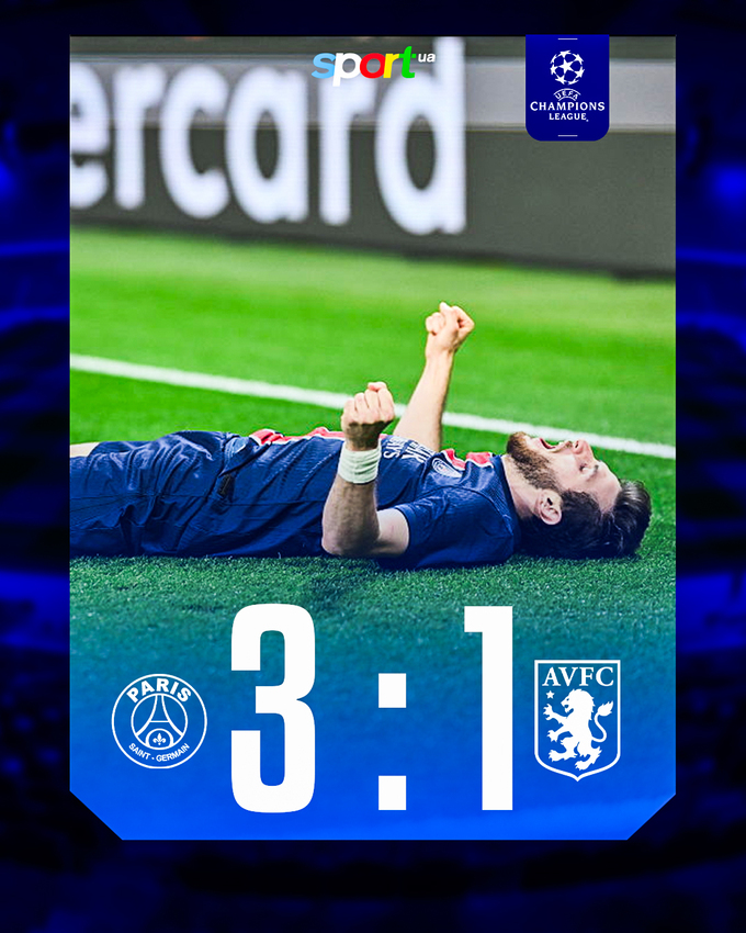 - 22:00. ПСЖ (Франция) – Астон Вилла (Англия) – 3:1