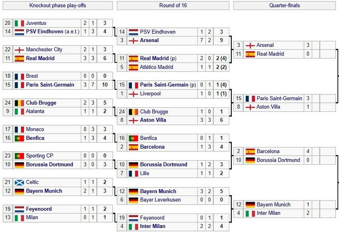 Ответные матчи 1/4 финала ЛЧ пройдут 15/16 апреля, полуфиналы состоятся 29/30 апреля и 6/7 мая. Финал планируется провести 31 мая на Альянц Арене в Мюнхене.
