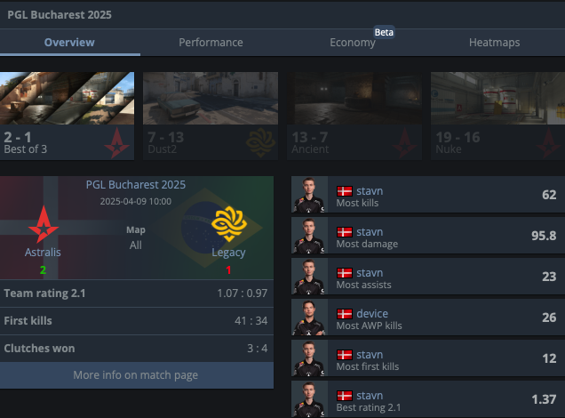 Astralis – Legacy – 2:1 (7:13, 13:7, 19:16)