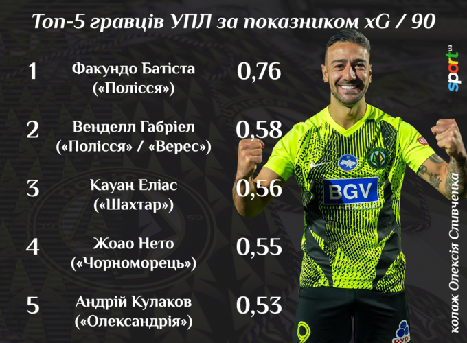 Уже сейчас Факундо Батиста является безусловным лидером УПЛ по среднематчевому показателю ожидаемых голов (xG). Причем своих конкурентов уругваец опережает в этом статистическом аспекте весьма пристойно: