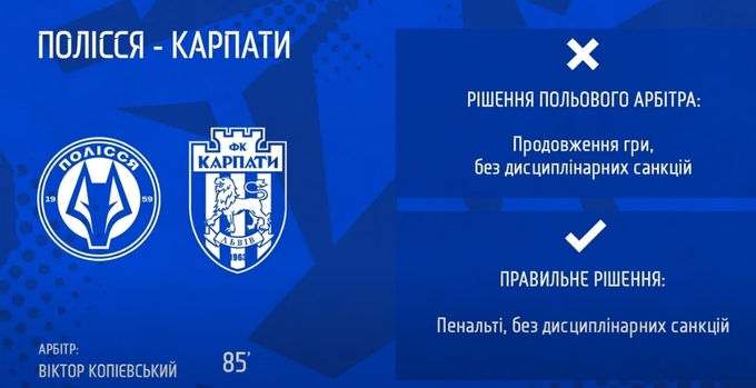 Эксперт арбитража УАФ Никола Риццоли считает, что в матче УПЛ между Полесьем и Карпатами при счете 0:1 в пользу львовской команды хозяева должны были сразу получить пенальти.
