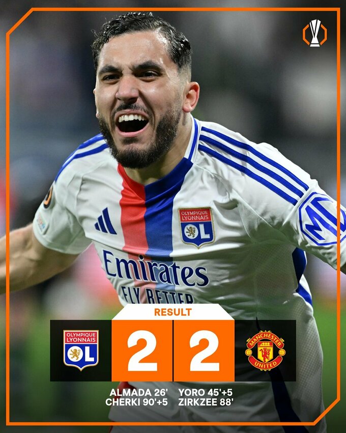 22:00. Лион (Франция) – Манчестер Юнайтед (Англия) – 2:2