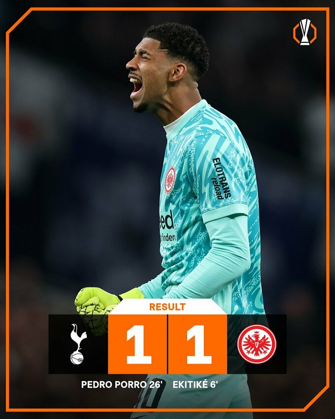 22:00. Тоттенхэм (Англия) – Айнтрахт (Германия) – 1:1