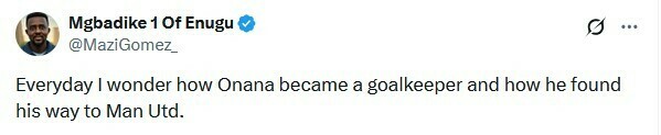 Mgbadike 1 Of Enugu: Каждый день я удивляюсь, как Онана стал вратарем и как он нашел путь в МЮ.