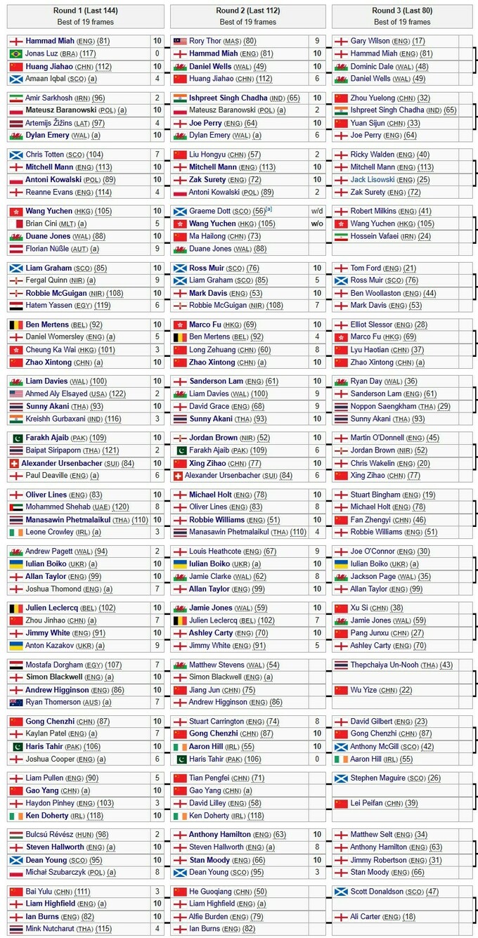 Квалификационные соревнования ЧМ-2025 проходят с 7 по 16 апреля в Английском институте спорта в Шеффилде. Игроки сражаются за места в 1/16 финала.