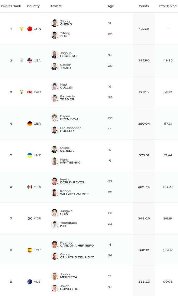 - 3. Мэтт Каллен, Бенжамен Тесье (Канада) – 381.15